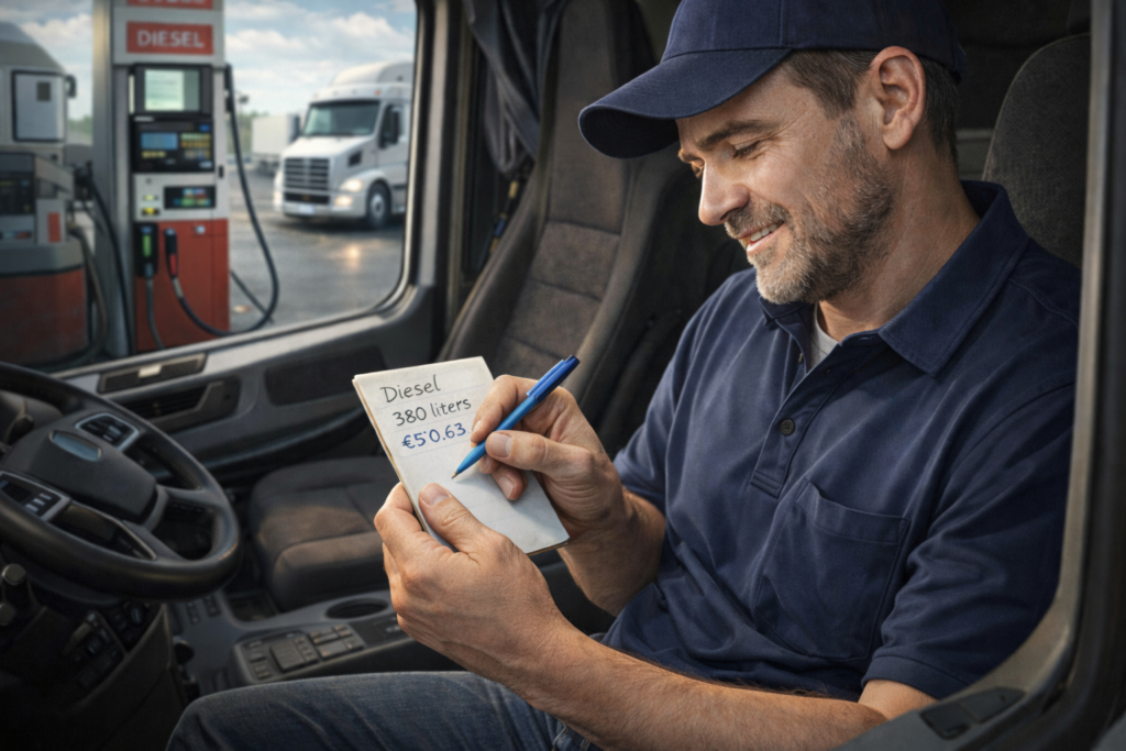 De bestuurder tankt, schrijft het in een notitieboekje, of doet het niet, of vergeet het je te vertellen, en deze situaties zijn onmogelijk bij te houden.