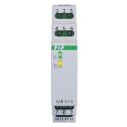 The MB-LI-4 module is a four-channel one-way counter. Each channel is independent and counts the impulses in accordance with individual settings. The results are presented in the form of a number of pulses and rescaled value in a range from 0 to ~4, 29 billion. Reading of the counter can be reset independently for each channel. Once the maximum number of pulses (overflow) is reached, counter automatically resets and counts from 0. The module has configurable options of counting pulses with low (0 V) or high (V+) signal and with leading or trailing edge.