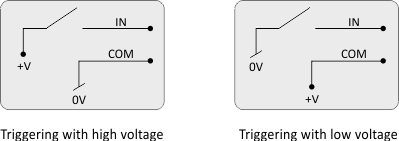 External control voltage is needed in each case to trigger input. If the module power supply is used to this end, it results in the loss of galvanic separation between control inputs, power supply and communication.